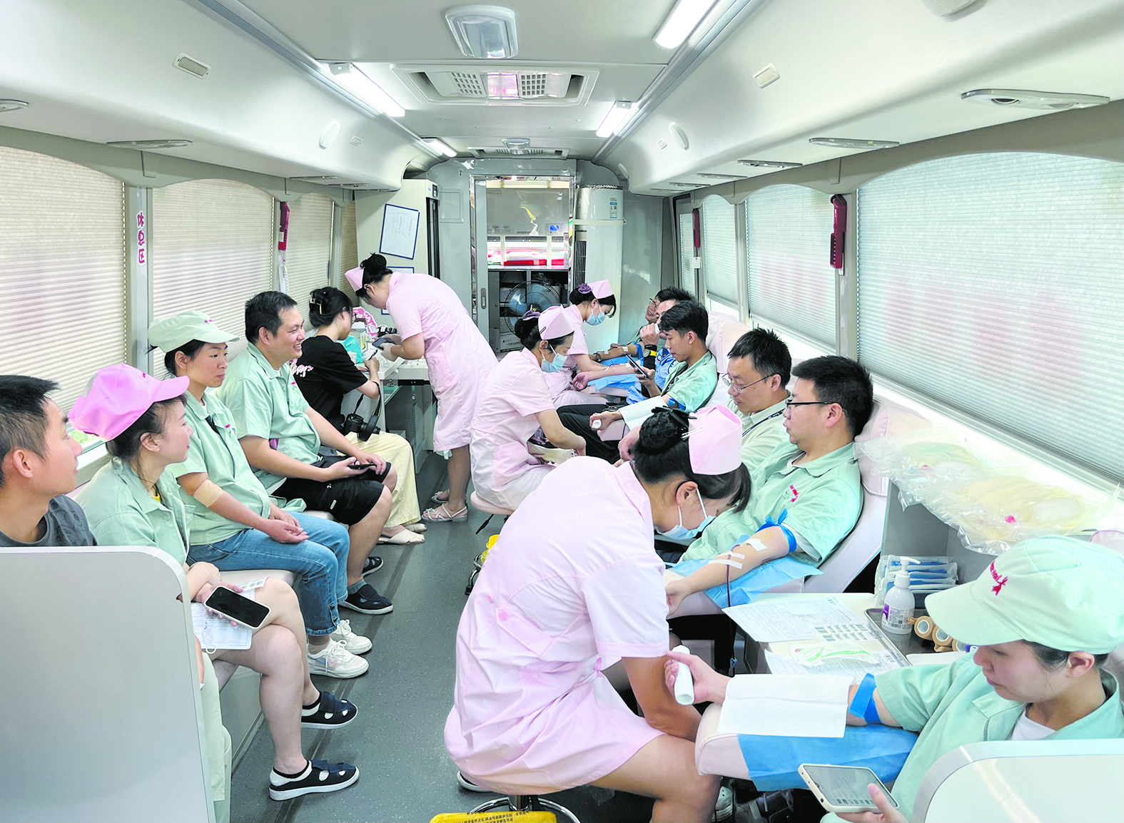 8月9日,市中心血站的采血车驶入天元区天易科技城,湖南长城计算机系统有限公司120余名职工参加无偿献血活动。该公司已连续5年在夏季组织开展团体献血活动,为缓解临床用血紧张状况贡献力量。