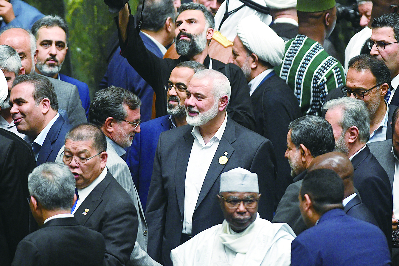 7月30日在伊朗德黑兰拍摄的伊斯梅尔·哈尼亚(中)。 新华社记者 沙达提 摄