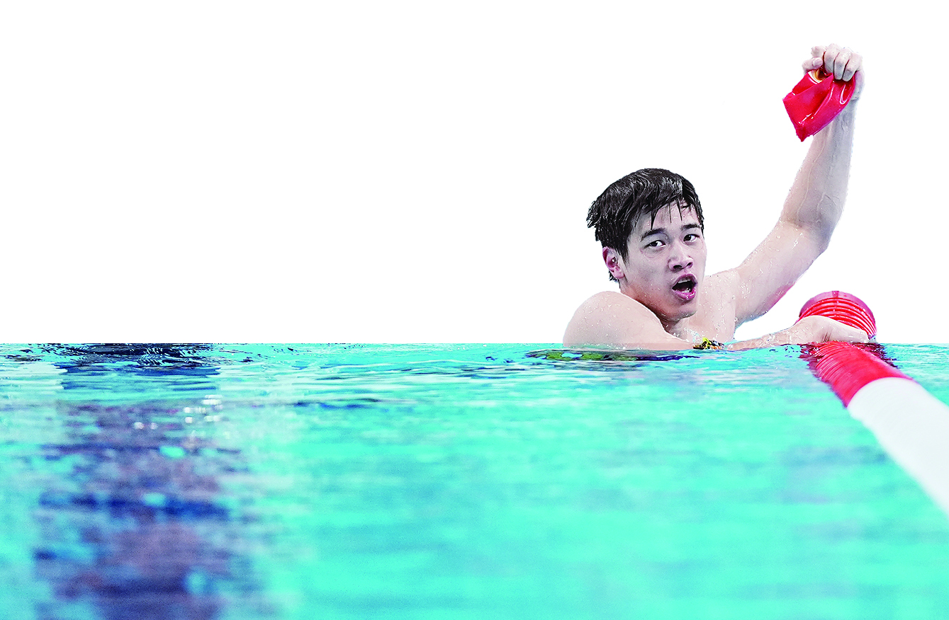 7月31日,中国选手潘展乐在比赛后庆祝。 新华社记者 杜宇 摄