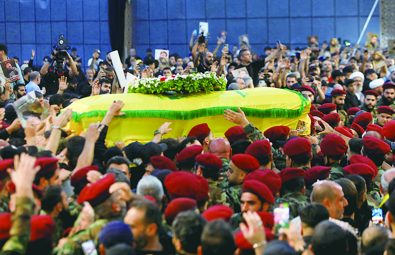 8月1日,在黎巴嫩首都贝鲁特,真主党支持者参加真主党高级军事指挥官福阿德·舒库尔的葬礼。 新华社发(比拉尔·贾维希 摄)