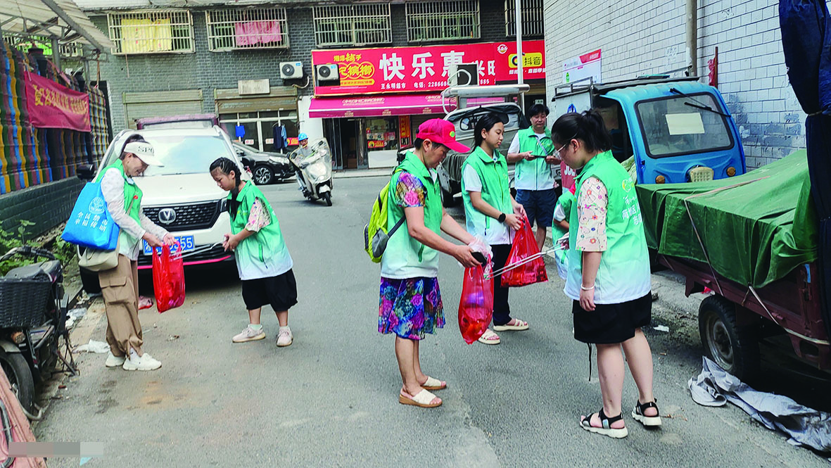 志愿者们穿着新马甲在合泰鑫城小区开展环境整治行动。 受访者 供图