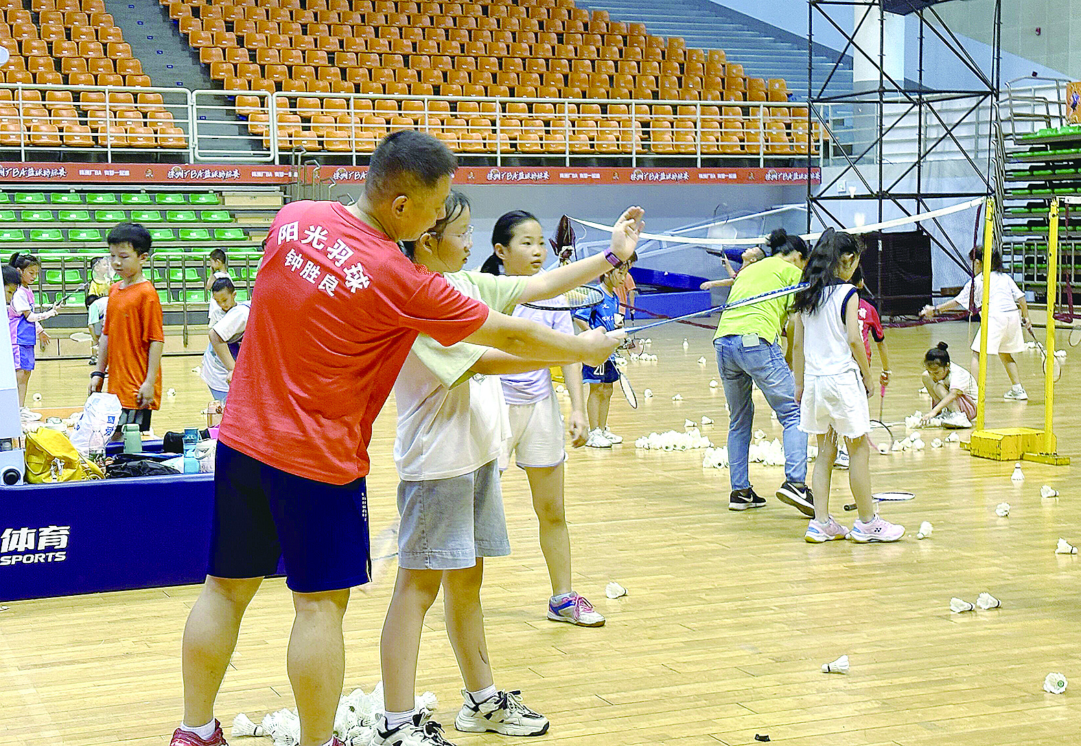 不少孩子在假期中参与体育训练,增强体质。 记者/戴凛 摄