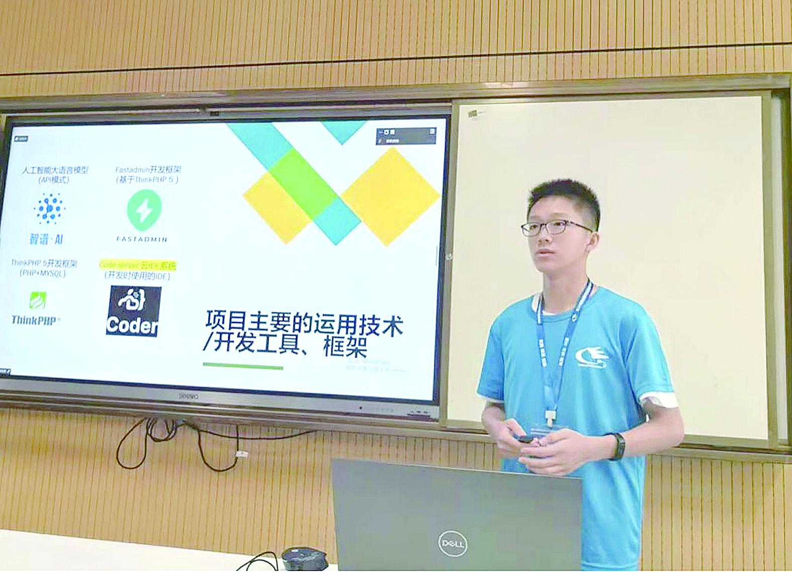 活动现场,王志至同学凭借扎实的编程能力、独特的创意设计和沉稳的答辩能力,以及作品《云端智学轩——信息技术专题网站》赢得评委们的高度评价,荣获“创新之星”殊荣。