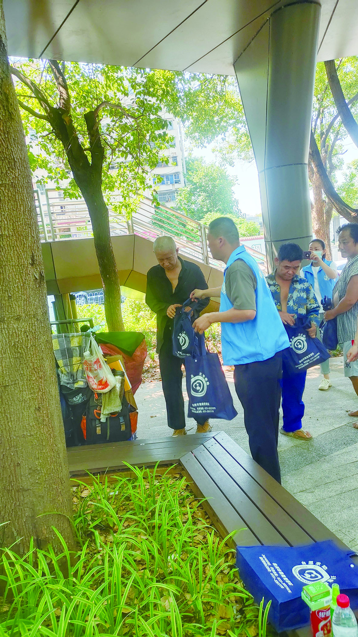 8月7日上午,市救助管理站工作人员先后来到芦淞区分袂亭、株洲大桥河东桥头等处,给流浪乞讨人员送去了方便面、矿泉水、八宝粥、花露水、风油精、藿香正气水、清凉油等避暑物资,同时劝导他们入站避暑。