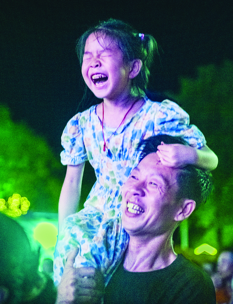 球场外,一对快乐至极的父女。 曾艳 摄