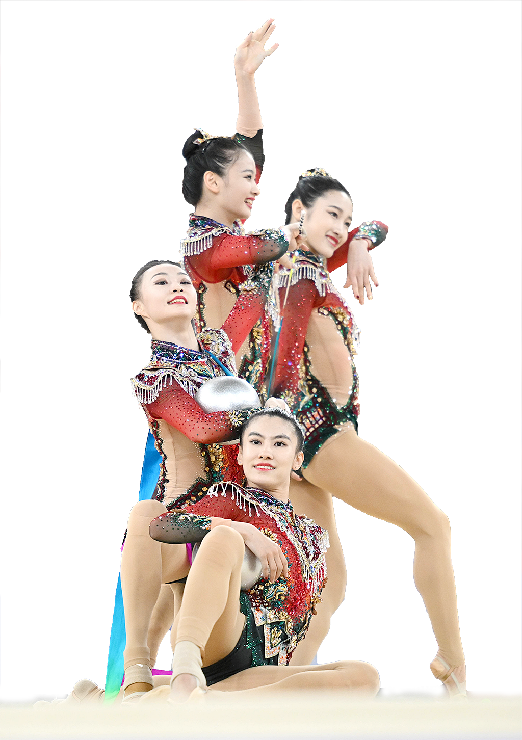 来到集体项目,中国队同样全力以赴,向最好成绩发起冲击——2008年北京奥运会,中国艺术体操队曾夺得集体全能银牌,摘得队史首枚奥运会奖牌。