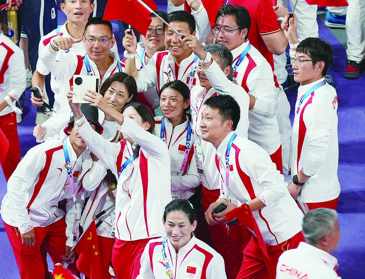 周进强介绍,本届奥运会中国体育代表团参赛运动员404人,共参加了30个大项42个分项232个小项的比赛,在11个大项14个分项上获得40金27银24铜,共91枚奖牌。金牌总数和质量取得突破,40枚金牌超过伦敦奥运会的39金、东京奥运会的38金。获得金牌的运动员达60名,创境外参赛历史新高,与2008年北京奥运会持平。此外,在射击、游泳、举重项目上,打破世界纪录1项、创造奥运会纪录9项次。