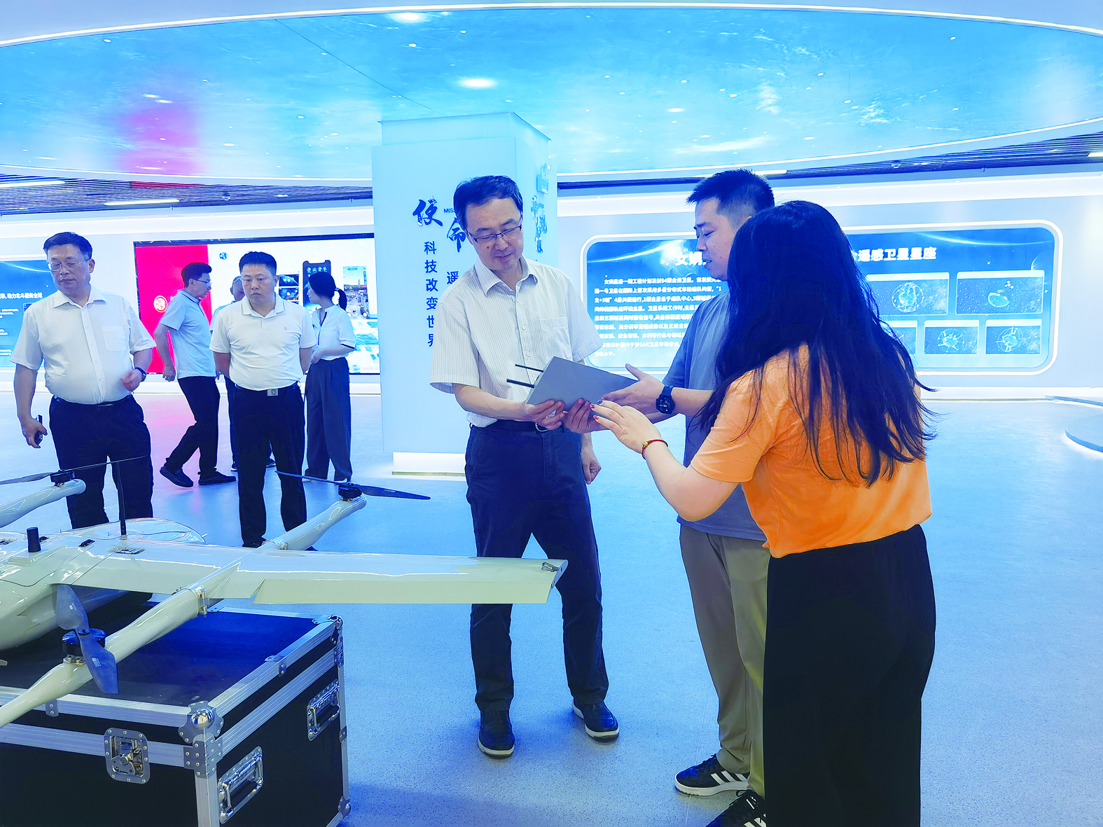 何年初(右三)带队了解株洲生产的北斗应用相关产品。 记者/陈驰 摄