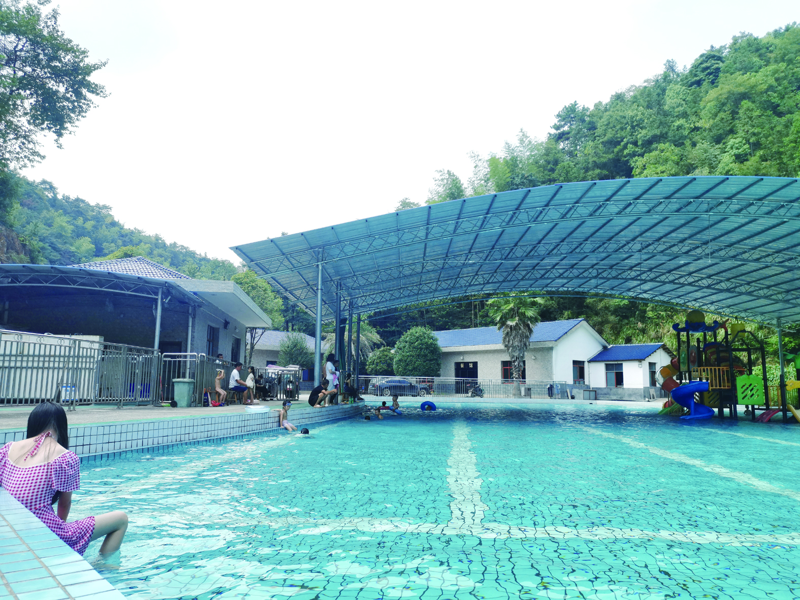 茶溪村游泳池位于水库大坝下方,分为儿童泳池和成人泳池。儿童泳池还架起了游乐设施,水源来自水库地层水,自7月份开放以来,吸引了附近多个村组的孩子们来消暑纳凉,高峰期时有近百人在此玩耍。“我们配备了专业教练和救生员,游泳设备很齐全,小孩子玩得很开心,家长也放心。”茶山镇茶溪村党总支书记杨满良介绍,村里还把防溺水安全知识宣传搬进了游泳池,沉浸式讲解游泳技巧和防溺水应急知识,增强青少年儿童防溺自救的能力。