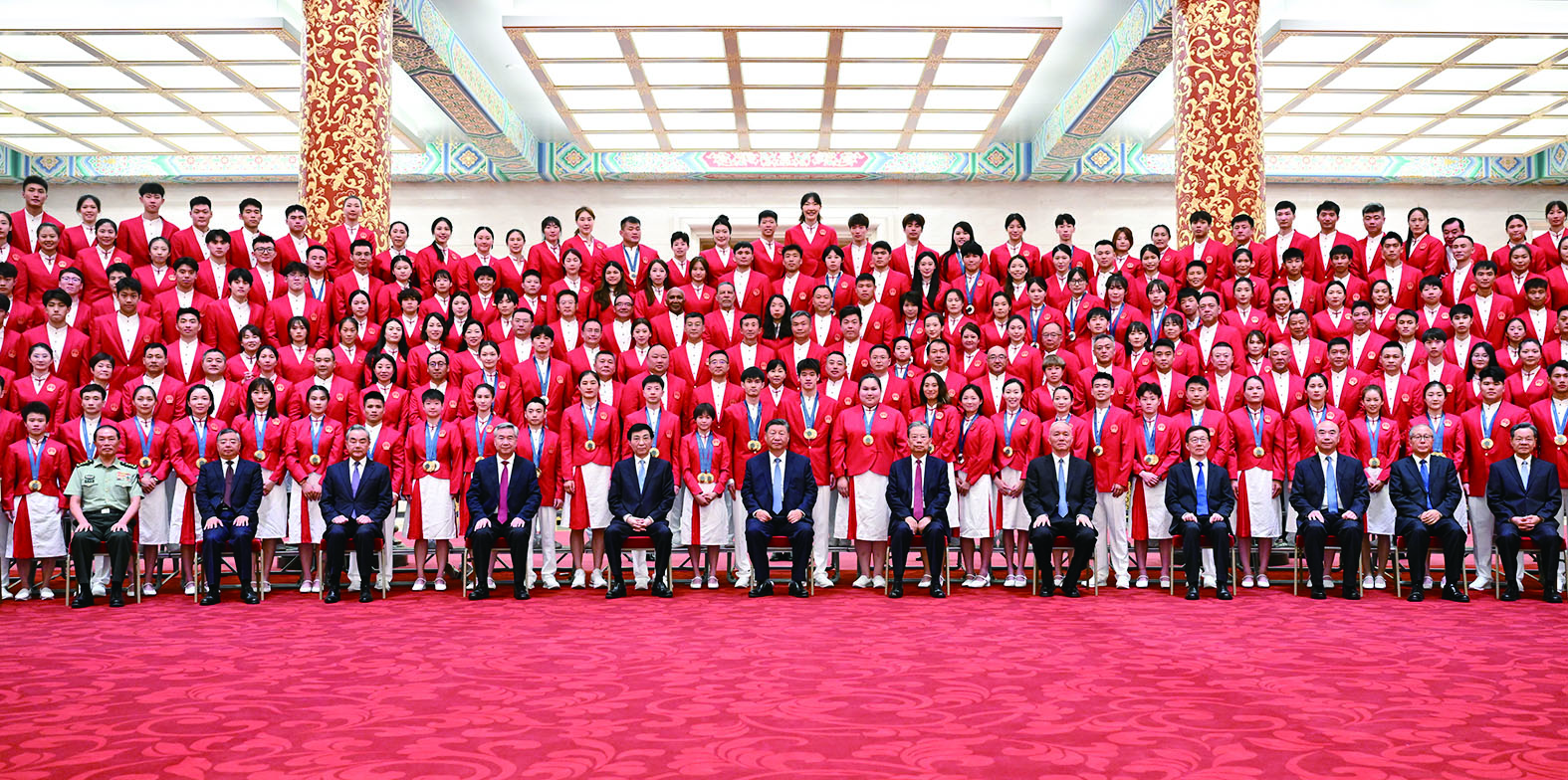 在热烈的掌声中,习近平发表重要讲话。他表示,中国体育代表团的优异成绩,既是我国体育事业发展进步的集中体现,也是中国式现代化建设成就的一个缩影,充分彰显了新时代中国力量。国运兴则体育兴、国家强则体育强。我国能够跻身世界体育大国、奥运强国之列,根本在于综合国力不断增强,为体育竞技训练提供了先进科技支撑和坚实物质保障,也为各领域体育人才脱颖而出创造了良好成长环境和广泛群众基础。新时代新征程,以中国式现代化全面推进强国建设、民族复兴伟业,必将为我国体育事业发展提供更好条件、注入强劲动力。我们要继续大力发展以人民为中心的体育事业,推动全民健身和全民健康深度融合,向着建设体育强国、健康中国的目标不断迈进。