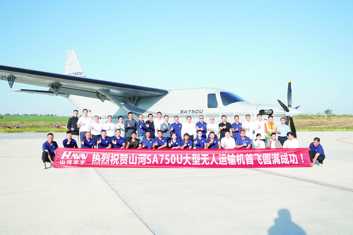 SA750U大型无人运输机的研制,是山河华宇积极响应党中央、国务院关于打造低空经济新质生产力的重大决策部署要求,依托山河航空板块已构建的完善的研发、制造、服务支持体系,瞄准未来空中物资运输的巨大需求,倾力打造商载达3吨级的战略性产品。研发团队仅用2年零8个月,便完成了飞机的概念设计到首架机成功首飞。