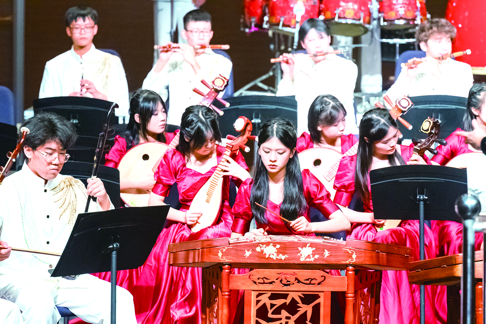 当株洲市一中的大型原创民族管弦乐曲《古韵湘潮》落下最后一个音符,全场掌声热烈,久久不散。