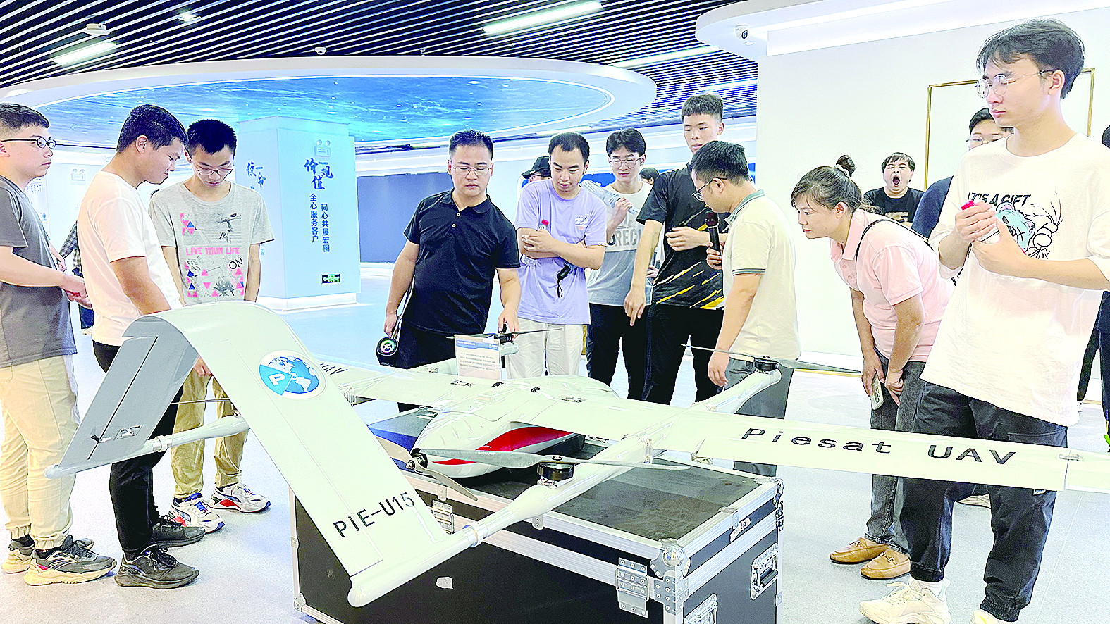 学生们了解“北斗”在无人机上的应用。 记者/戴凛 摄