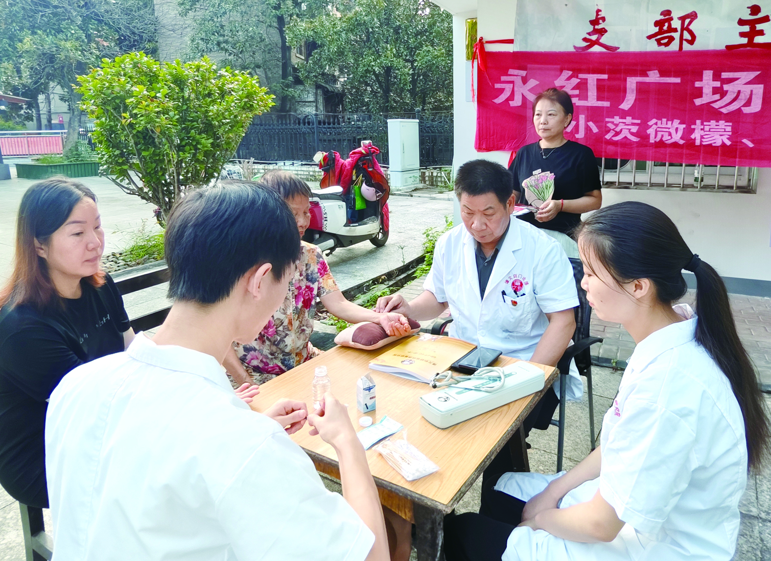 株洲日报讯(全媒体记者/刘平) 8月20日上午7点多钟,由小茨微檬志愿服务中心组织开展的“小广场便民服务”活动在荷塘区茨菇塘街道永红社区永红村小广场如期开展,并首次推出“院长坐诊”活动,受到小区居民欢迎。