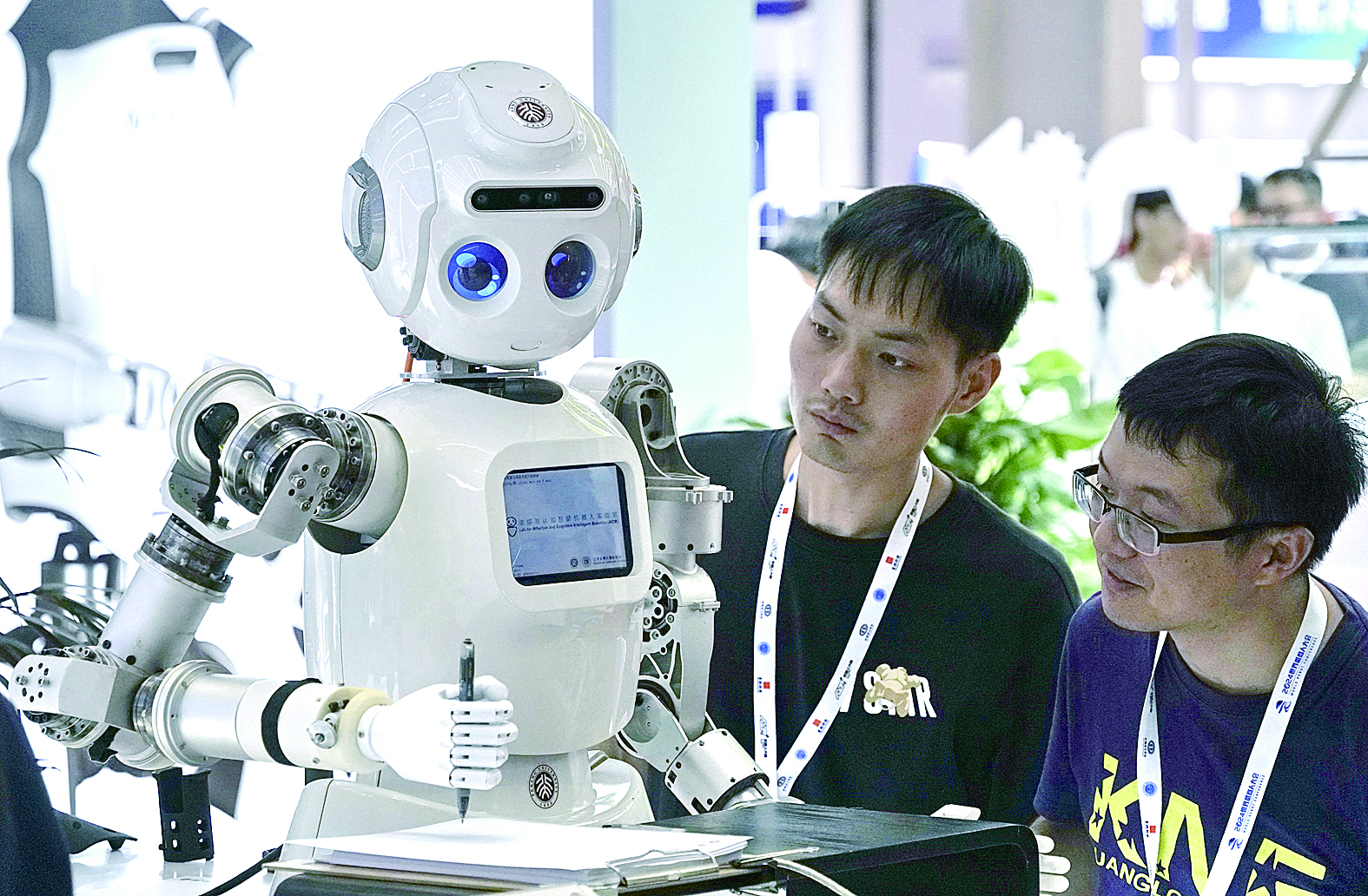 8月21日,以“共育新质生产力 共享智能新未来”为主题的2024世界机器人大会在北京开幕,大会包含论坛、博览会、机器人大赛等活动。图为当日,观众在世界机器人大会上参观教育类机器人。 新华社发