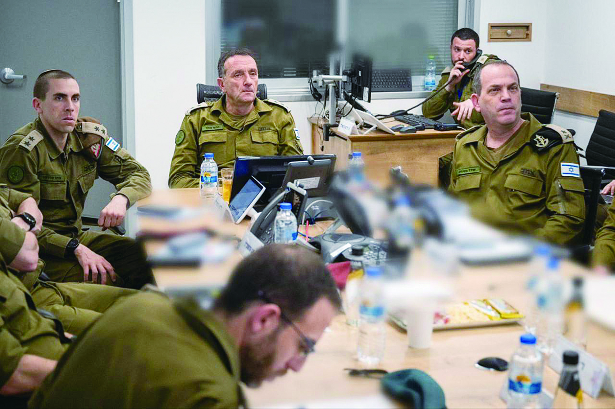 8月25日,在以色列特拉维夫的国防军总部,以色列国防军总参谋长赫齐·哈莱维(中)指挥军事行动。 新华社发 (以色列国防部 供图)