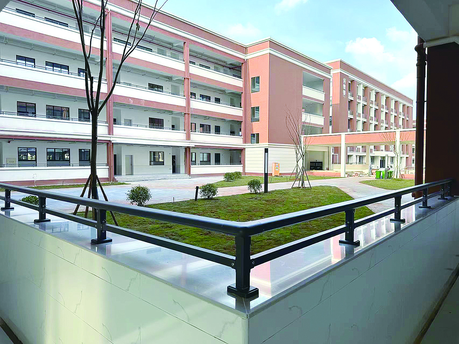 砖红色楼体、外墙上白色的装饰线让楼体更加干净明亮;宽敞的教室里,科学设计的课桌椅摆放整齐,智慧黑板、护眼灯等全部安装完毕……