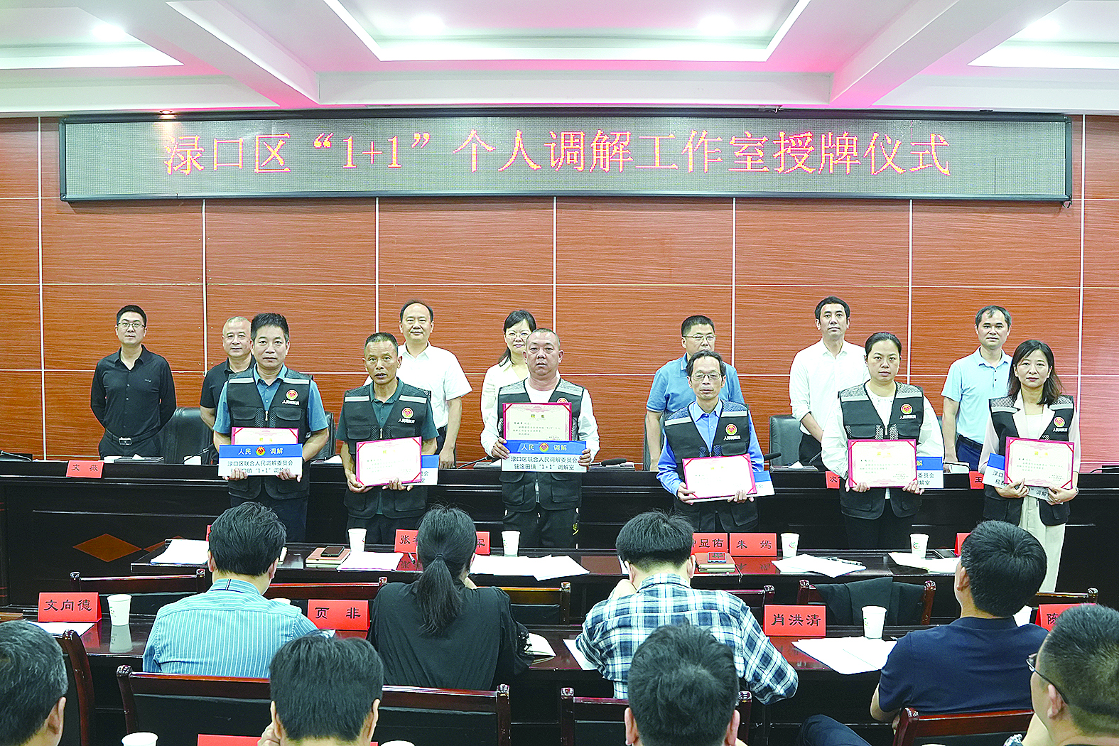 6月5日,渌口区举行“1+1”(1名专家调解员搭配1名专职调解员)调解工作室授牌仪式。
