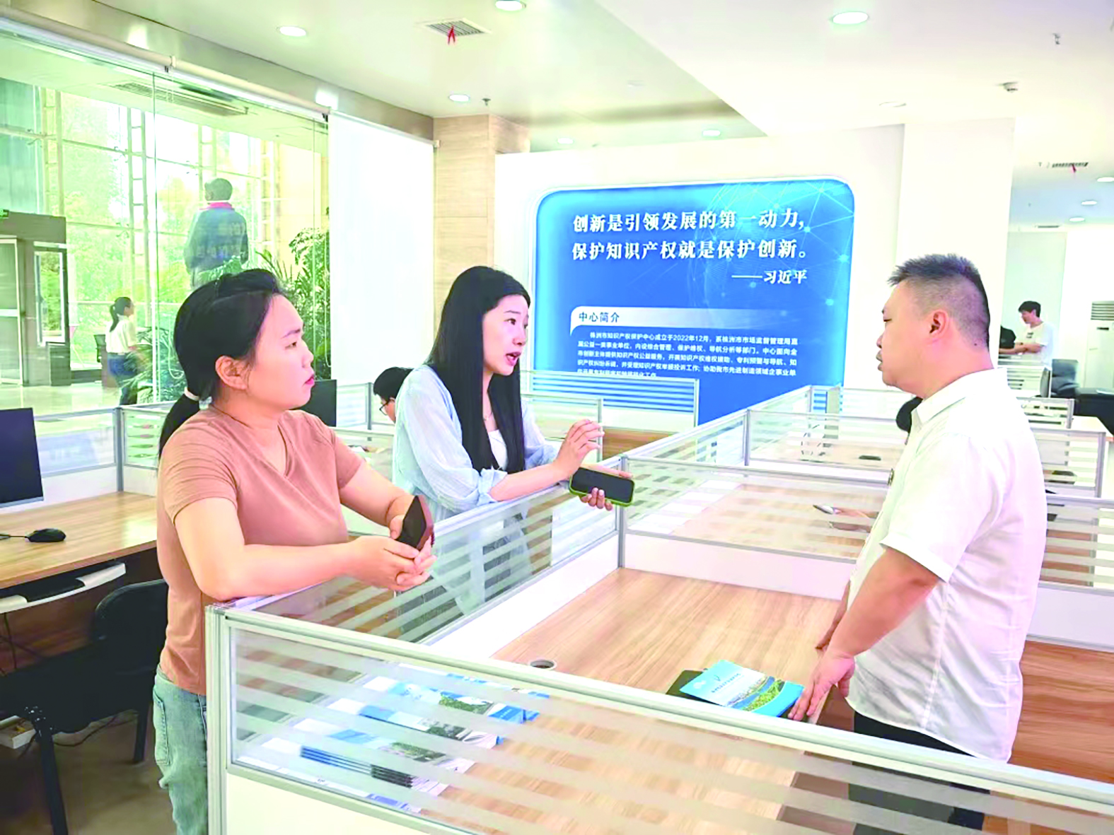 企业代表在株洲市知识产权保护中心咨询相关业务。