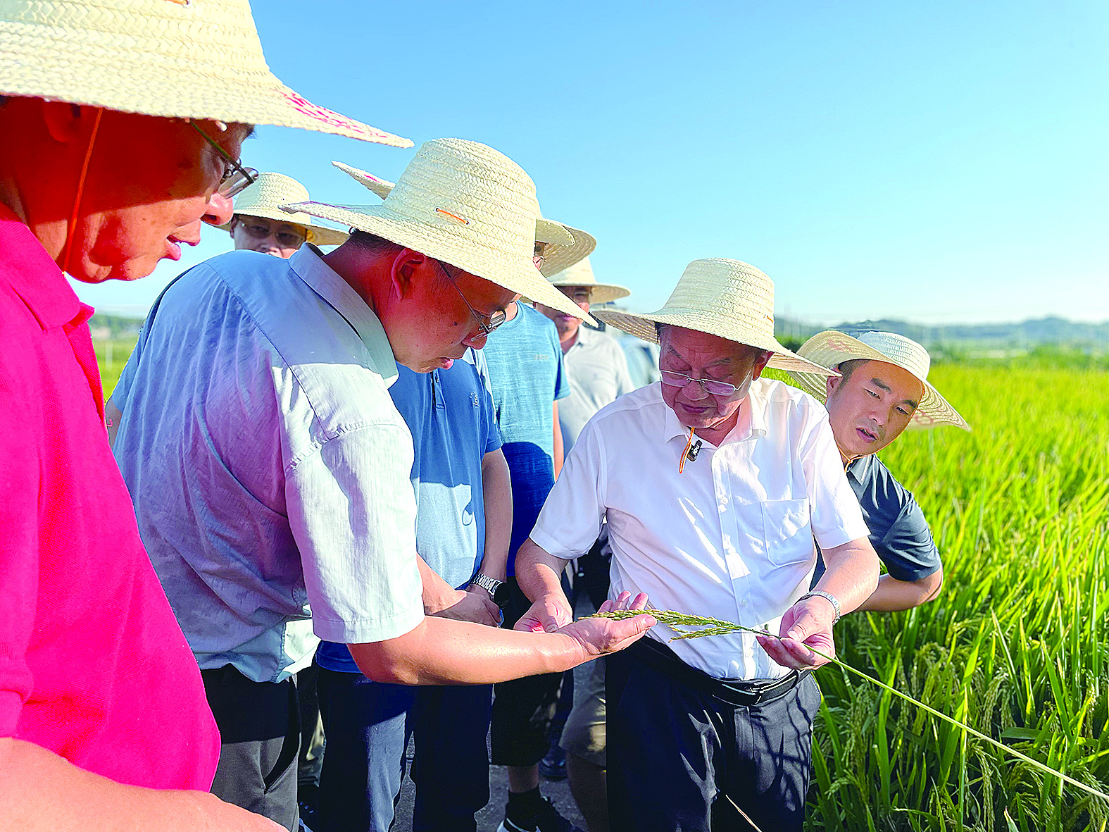 院士俯身田间地头 看水稻长势
