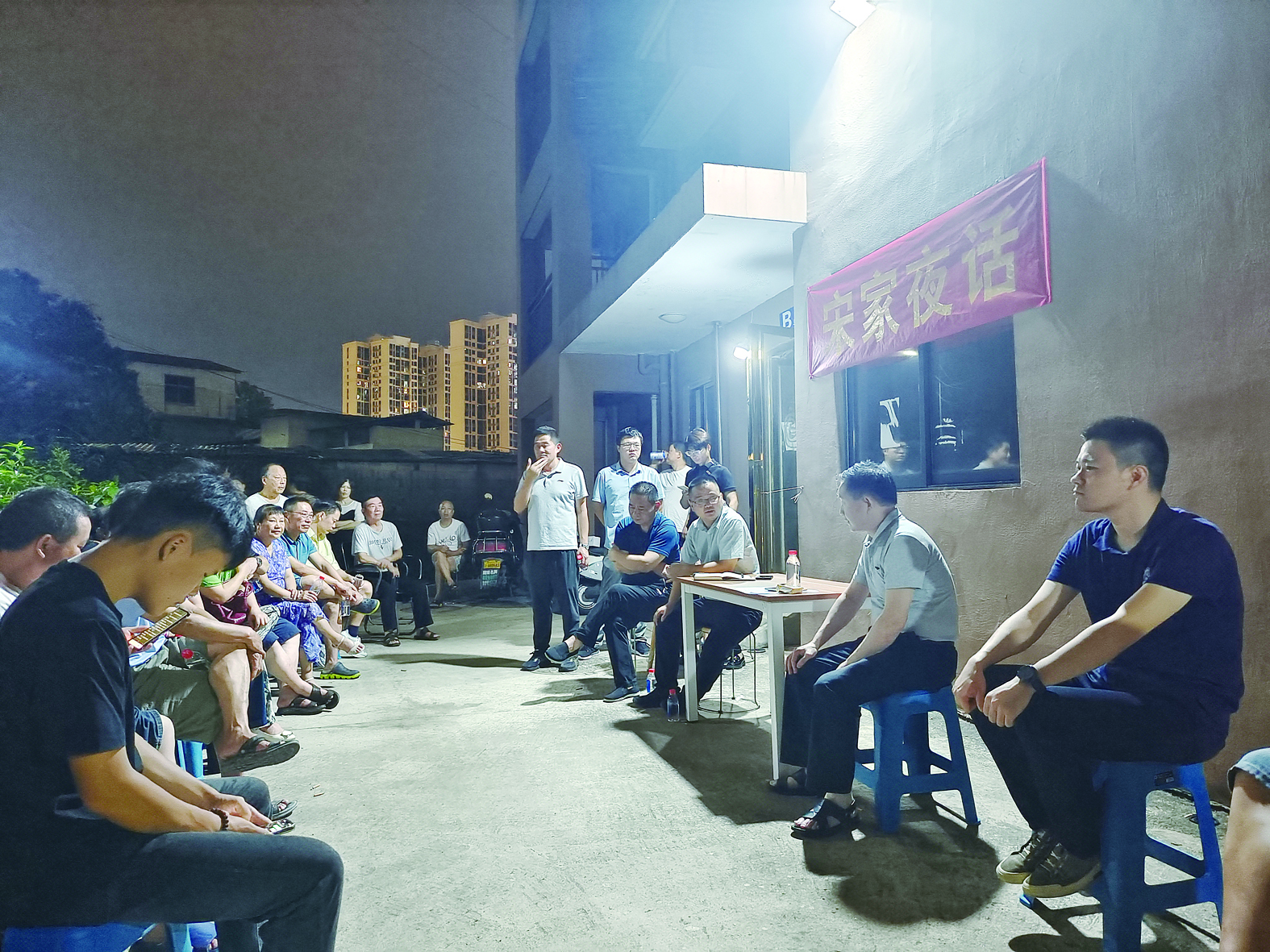 8月30日晚7时10分许,荷塘区艺中小区1单元门口的空处摆满了凳子,40多位居民各自聊着家长里短,等待着宋家桥街道办事处举办的首场“宋家夜话”的开始。