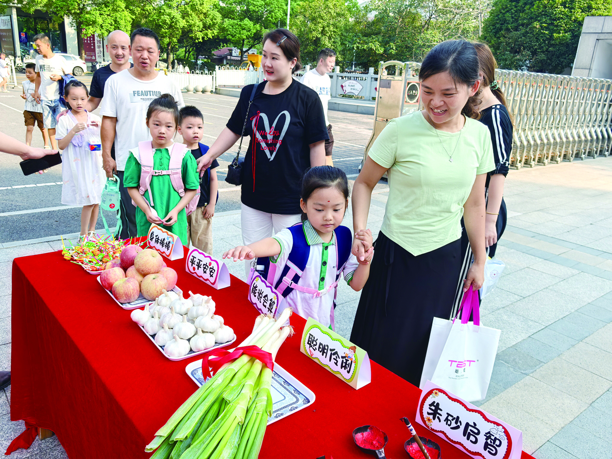 荷塘区文化路小学的“小萌新”,摸一摸棒棒糖、红苹果……寓意着他们身体棒棒、平平安安、聪明伶俐、能说会算。 记者/戴凛 通讯员/谭婷婷 摄