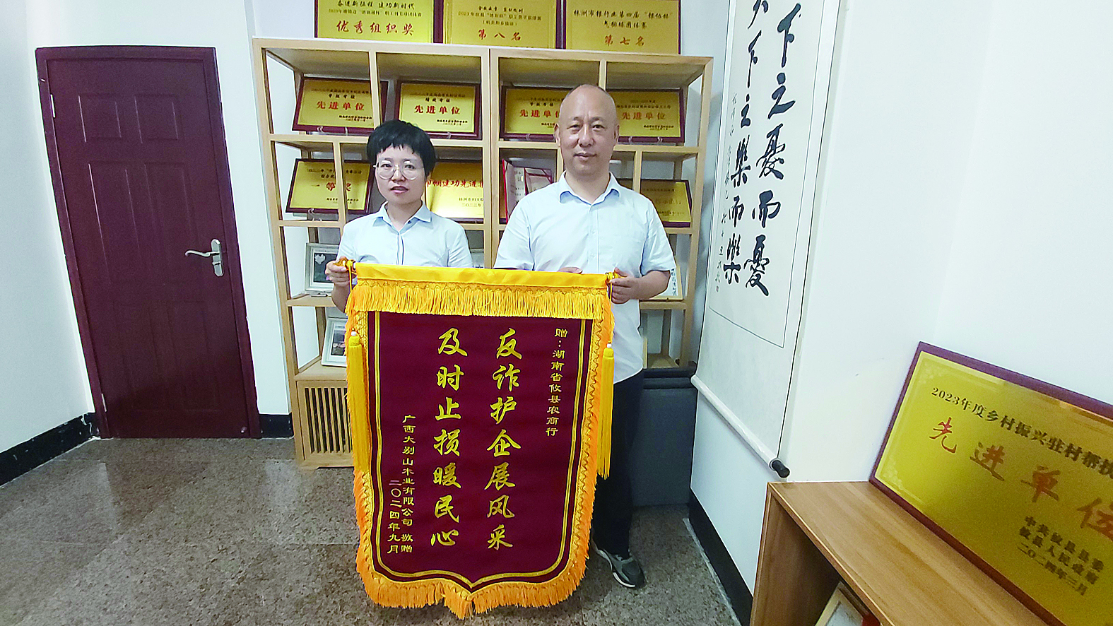 “认真细致、高度敬业,真不敢相信一家外省的银行能帮我们公司挽回这么多损失。”将锦旗送到攸县农商银行,广西某木业公司负责人张经理难掩激动之情。