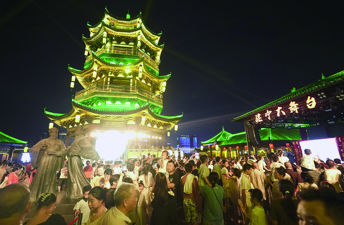 随着夜幕降临,分袂亭被一盏盏灯笼点缀得如梦如幻,璀璨的光芒照亮了夜空,也为这场游园会增添了几分神秘与浪漫。《建宁千古情》实景表演震撼上演,生动演绎株洲历史渊源,吸引了无数游客驻足观看,欢呼声此起彼伏。