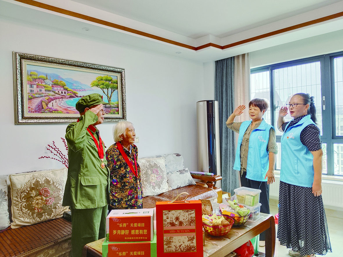 9月16日,株洲晚报志愿者联合会“乐得”关爱为国作出特殊贡献老人项目,为26位为国家作出特殊贡献的老人送去中秋慰问。