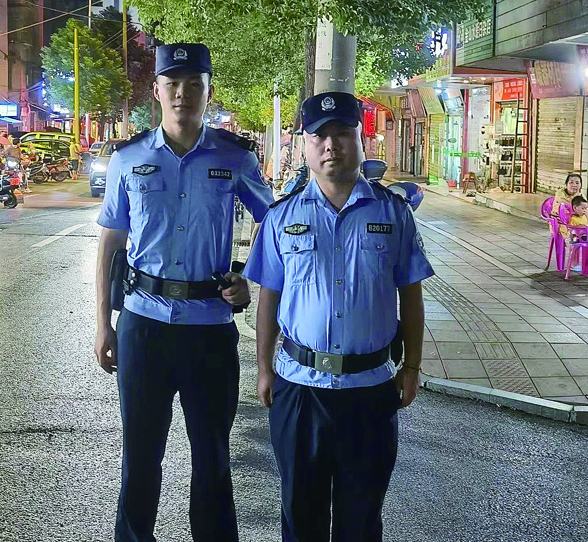 炎陵公安张涛(左)在警营坚守的第六个中秋。 通讯员供图
