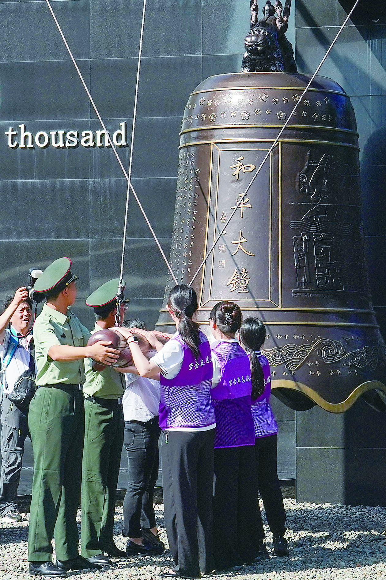 9月18日,社会各界代表在侵华日军南京大屠杀遇难同胞纪念馆撞响和平大钟,以此铭记历史、祈愿和平。 今年是“九一八”事变爆发93周年。当日,“铭记‘九一八’事变爆发93周年”主题教育活动在侵华日军南京大屠杀遇难同胞纪念馆举行。