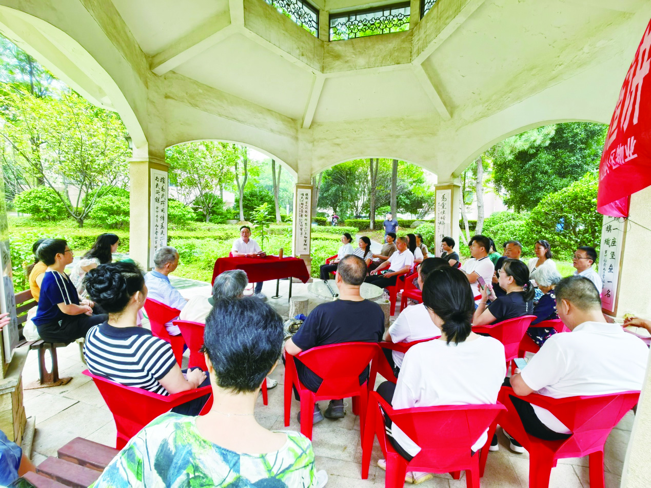 9月20日,在天元区栗雨街道颐景园小区,退休党员余松青以理论结合案例的方式,带领居民深入学习贯彻党的二十届三中全会精神,吸引不少居民主动参与、认真聆听并开展交流探讨。
