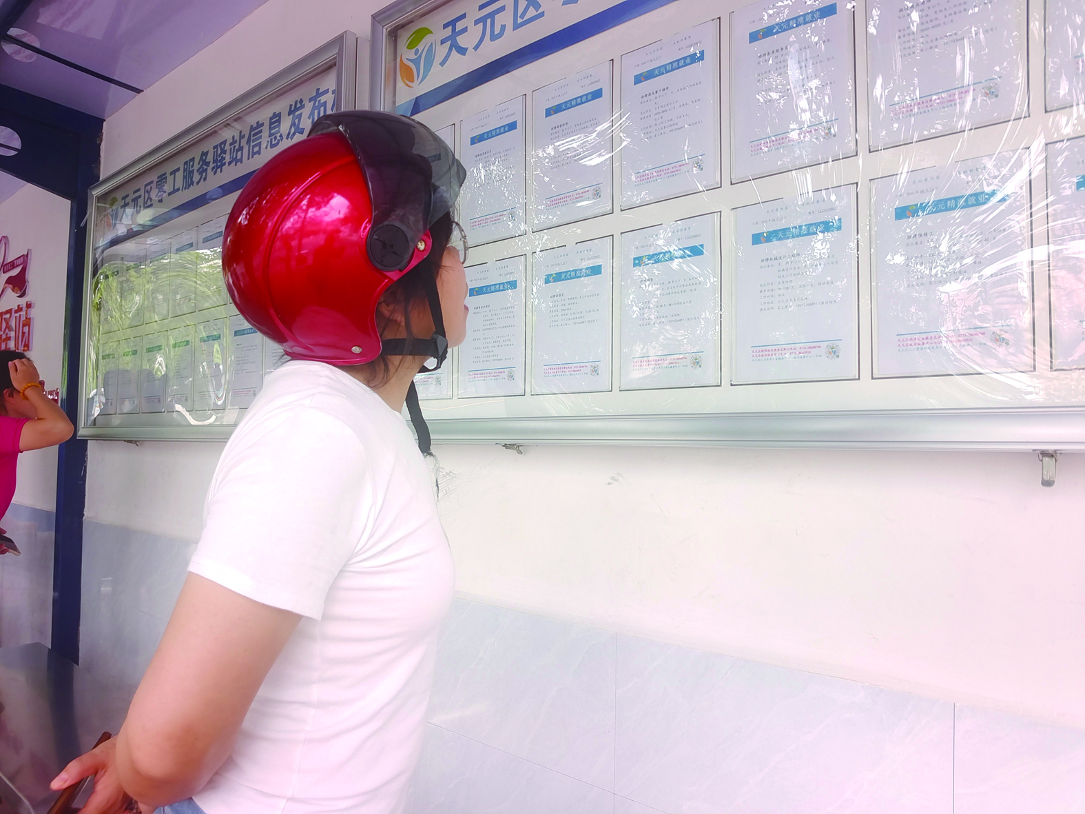 天元区零工服务驿站,一名市民正在查看企业招工信息。记者/何春林 摄