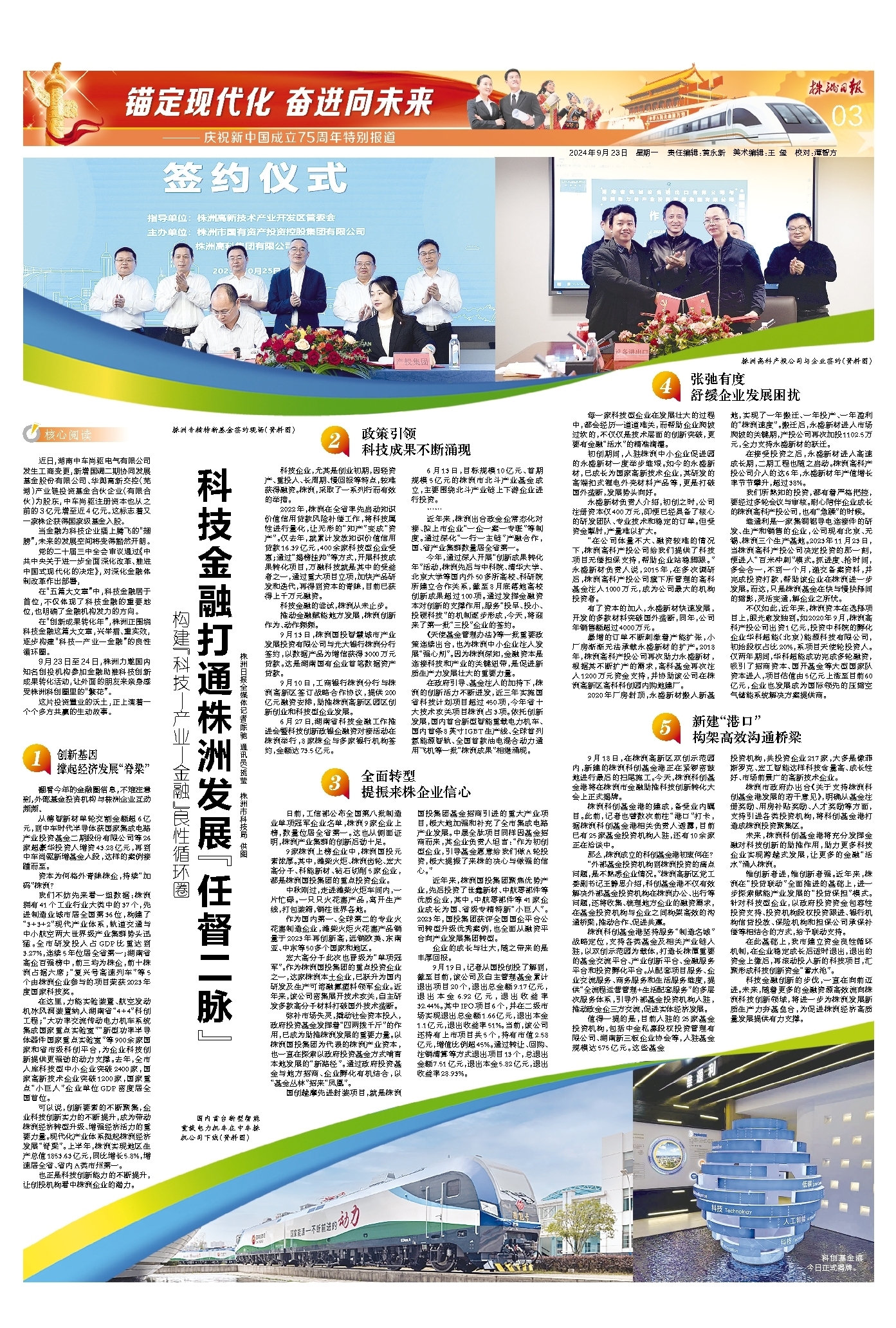 近年来,株洲出台政金企常态化对接、拟上市企业“一企一案一专班”等制度。通过深化“一行一主链”产融合作,国、省产业集群数量居全省第一。