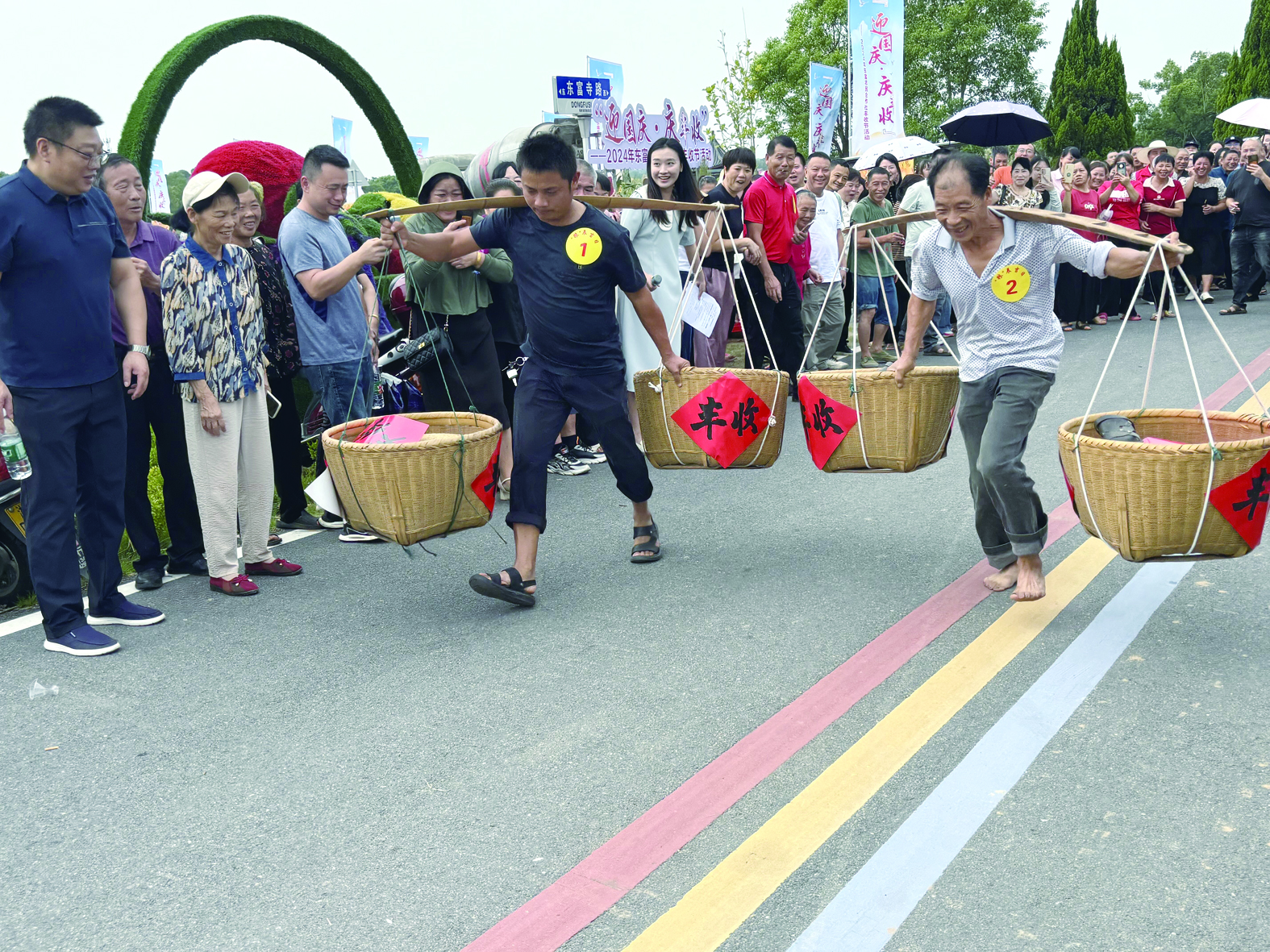 担谷赛跑游戏。龙钰鑫 摄
