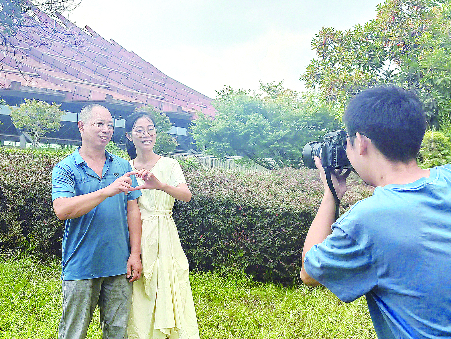记者戴凛为陈艳辉父女拍摄合影。 记者/孙晓静 摄