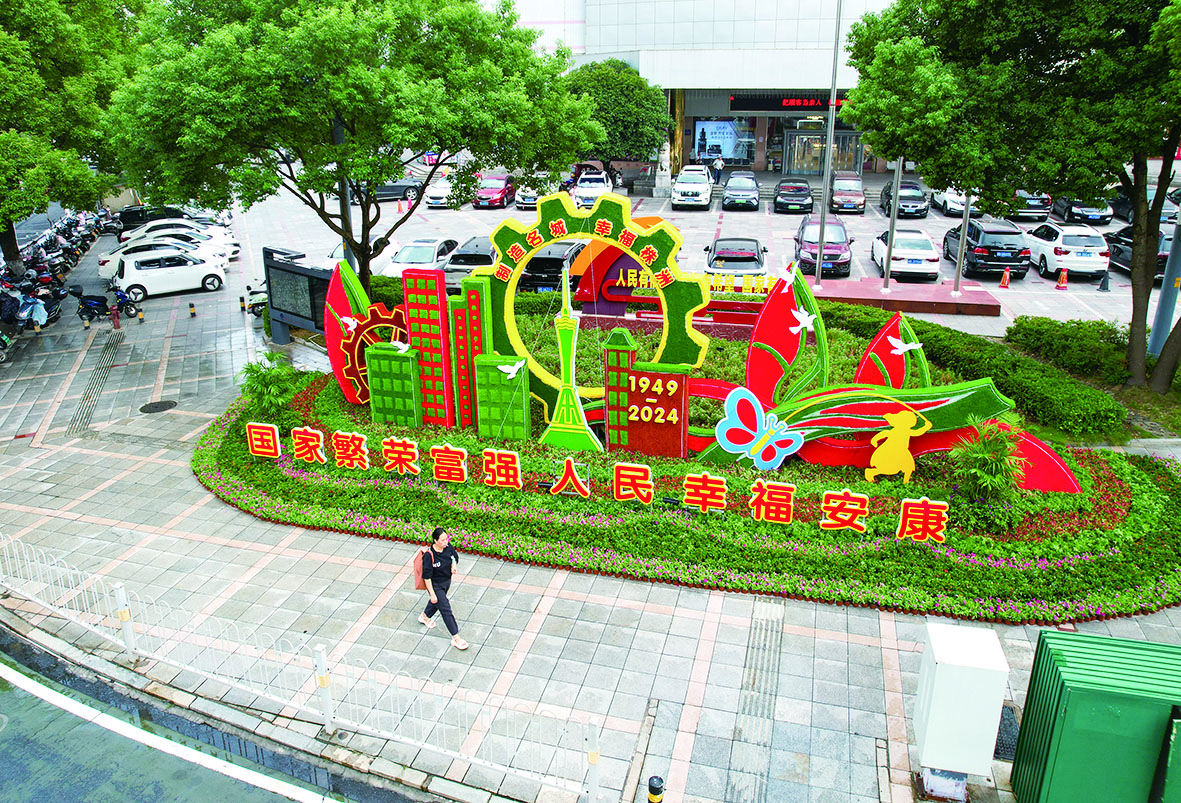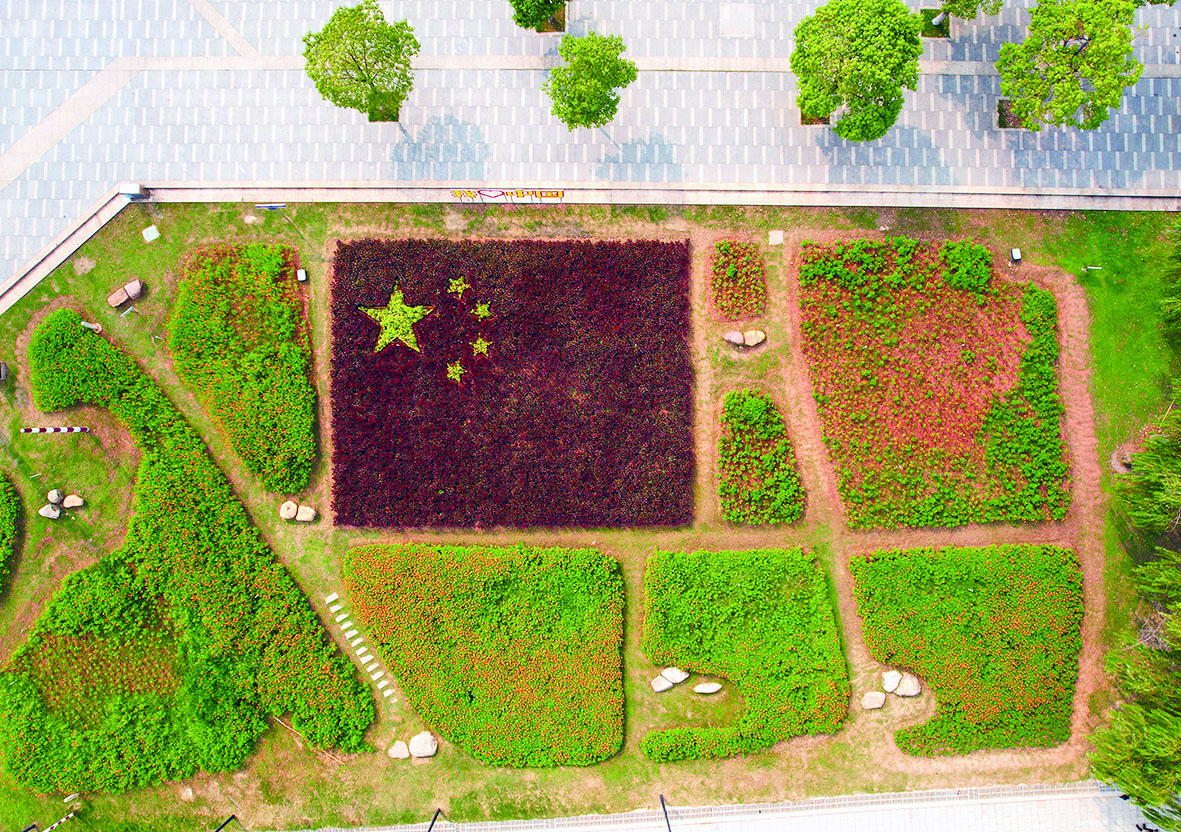 9月27日,在湘江风光带河西段和长江广场,园林工人布置了各类鲜花和灌木。鲜花竞相绽放,黄色、红色和浅紫色的花朵交叠,呈现出一幅姹紫嫣红的锦绣画卷。