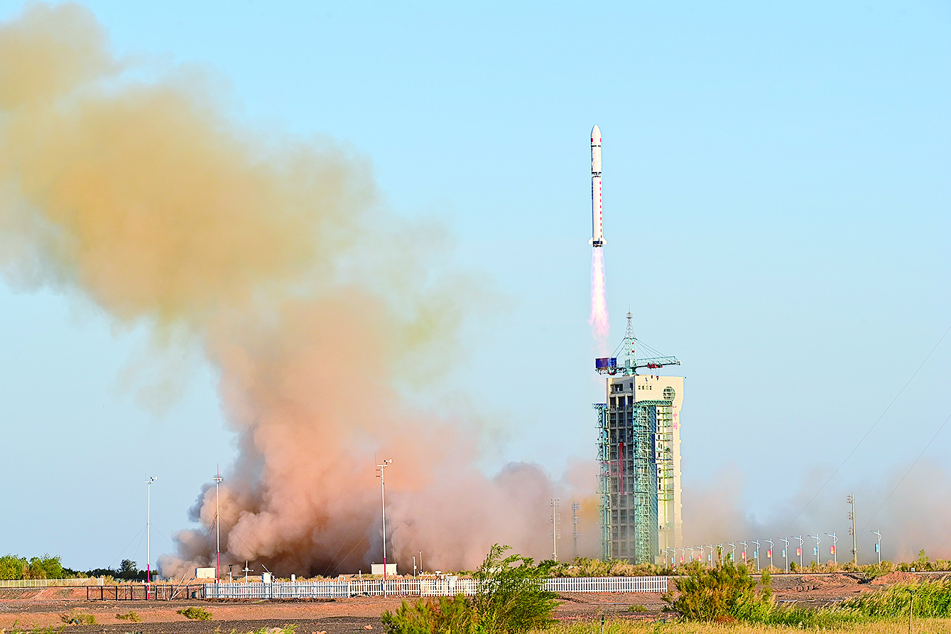 9月27日18时30分,长征二号丁运载火箭发射升空。 新华社发(汪江波 摄)