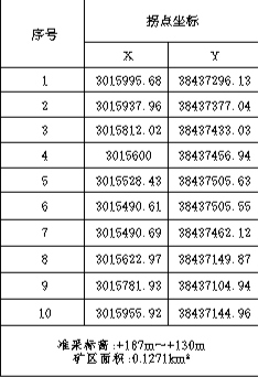 2.5采矿权范围拐点坐标、准采标高及面积(2000国家大地坐标系,1985国家高程基准):
