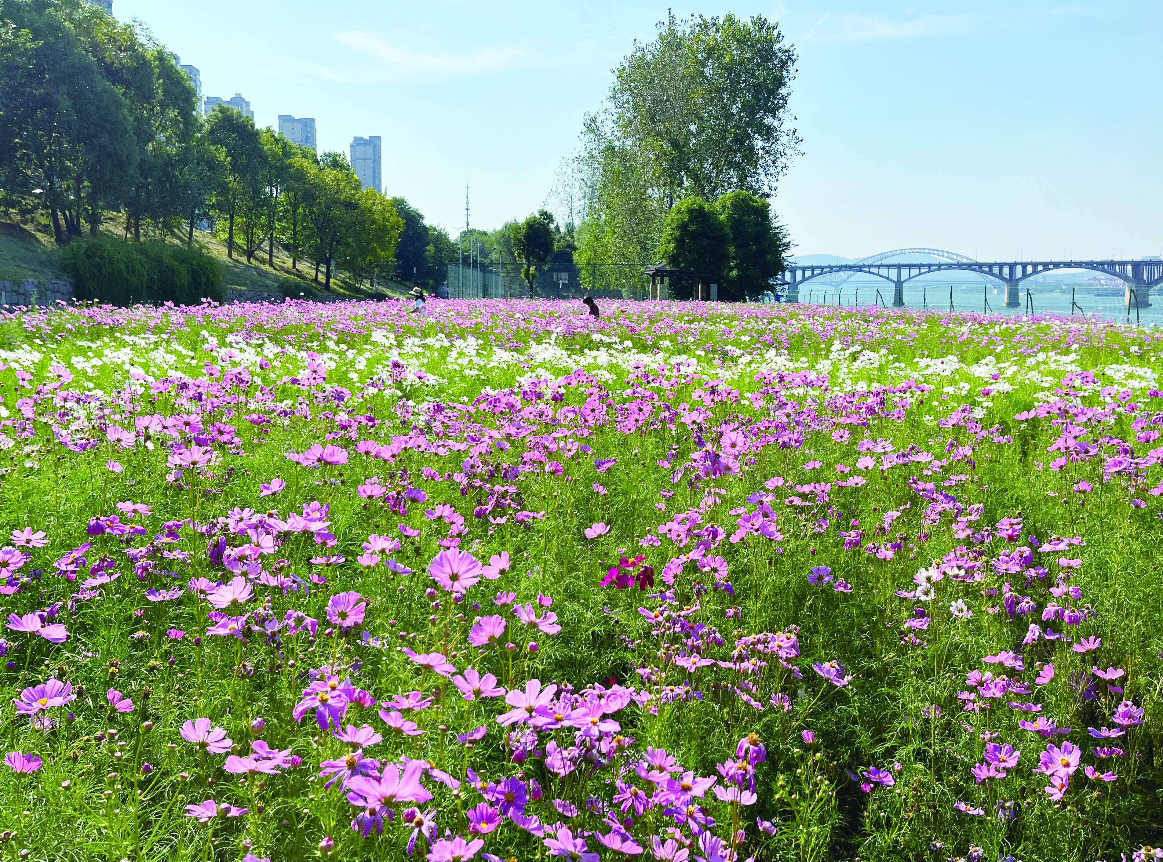 赏花、露营、野餐……10月5日,市民在河西湘江风光带,乐享“家门口”的假日时光。图为市民在风光带逛“花海”。 株洲日报全媒体记者/刘平 摄