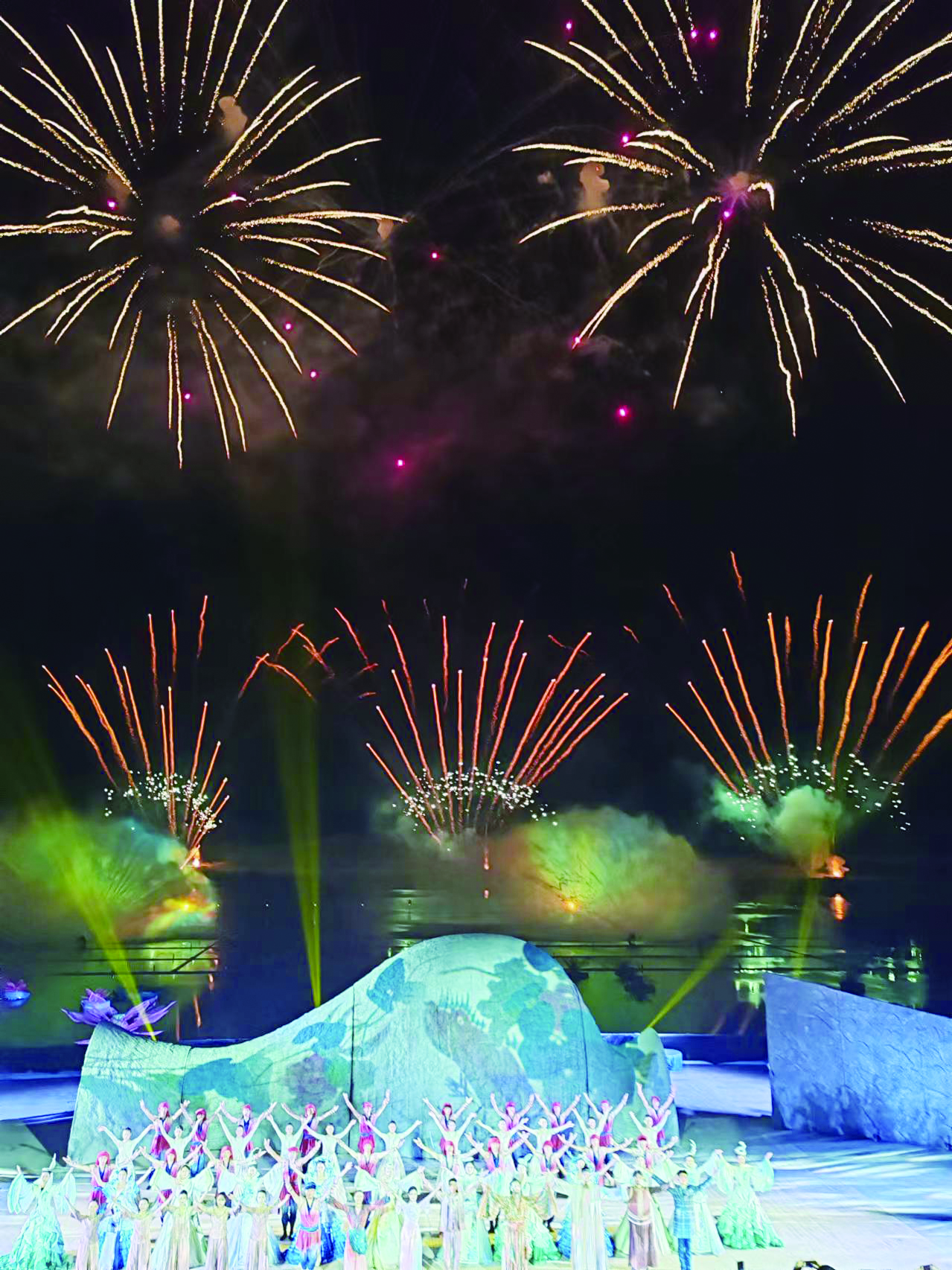 9月29日,2024湖南(醴陵)国际陶瓷产业博览会开幕。当晚,在醴陵市陶子湖剧场,《国瓷醴陵》情景剧热闹上演,演出中灿烂的烟花在夜空绽放,与精彩的节目相互辉映,让瓷城大地彰显独特魅力 。 株洲日报全媒体记者/刘震 摄