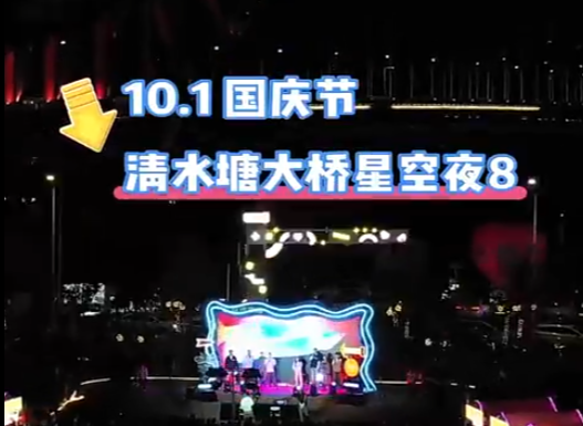 10月1日,国庆节当晚,九郎山职教城青歌赛晋级选手在清水塘大桥下一起歌唱祖国。