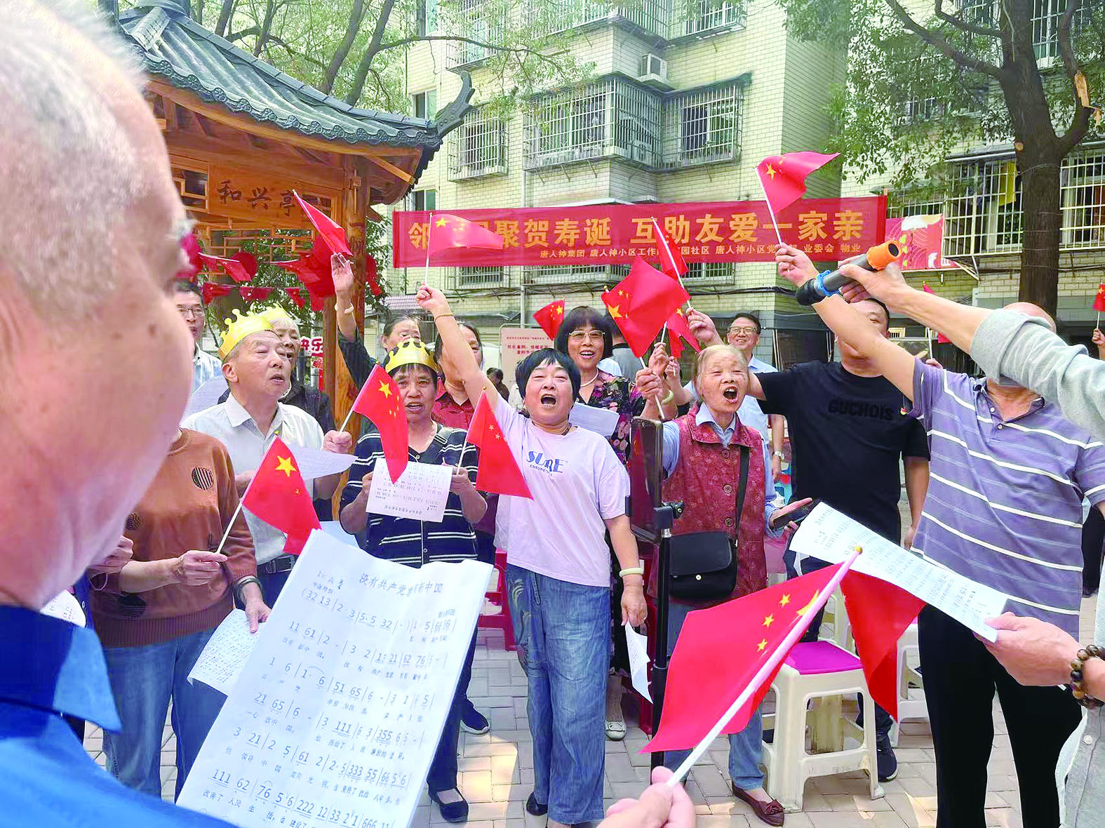 在渌口区伏波广场,内容丰富、形式多样的群众性文体活动轮番上演。一旁的咨询展台,公安、司法等部门的志愿者在普及防毒防诈、平安建设、法律援助等知识。在便民服务专区,志愿者提供义诊、家电清洗、磨刀、理发等服务,还有20家企业带着500多个岗位求贤纳才。趣味游戏现场也十分火爆,赶气球、套圈、夹乒乓球等小游戏吸引了众多居民一展身手,大家在竞技中收获欢笑与情谊。在拍照打卡点,大家纷纷记录下美好瞬间,并在“庆祝新中国成立75周年”留言板写下祝福的话语。当天,该区还邀请了10位75岁老人集体过生日,并送上礼物。
