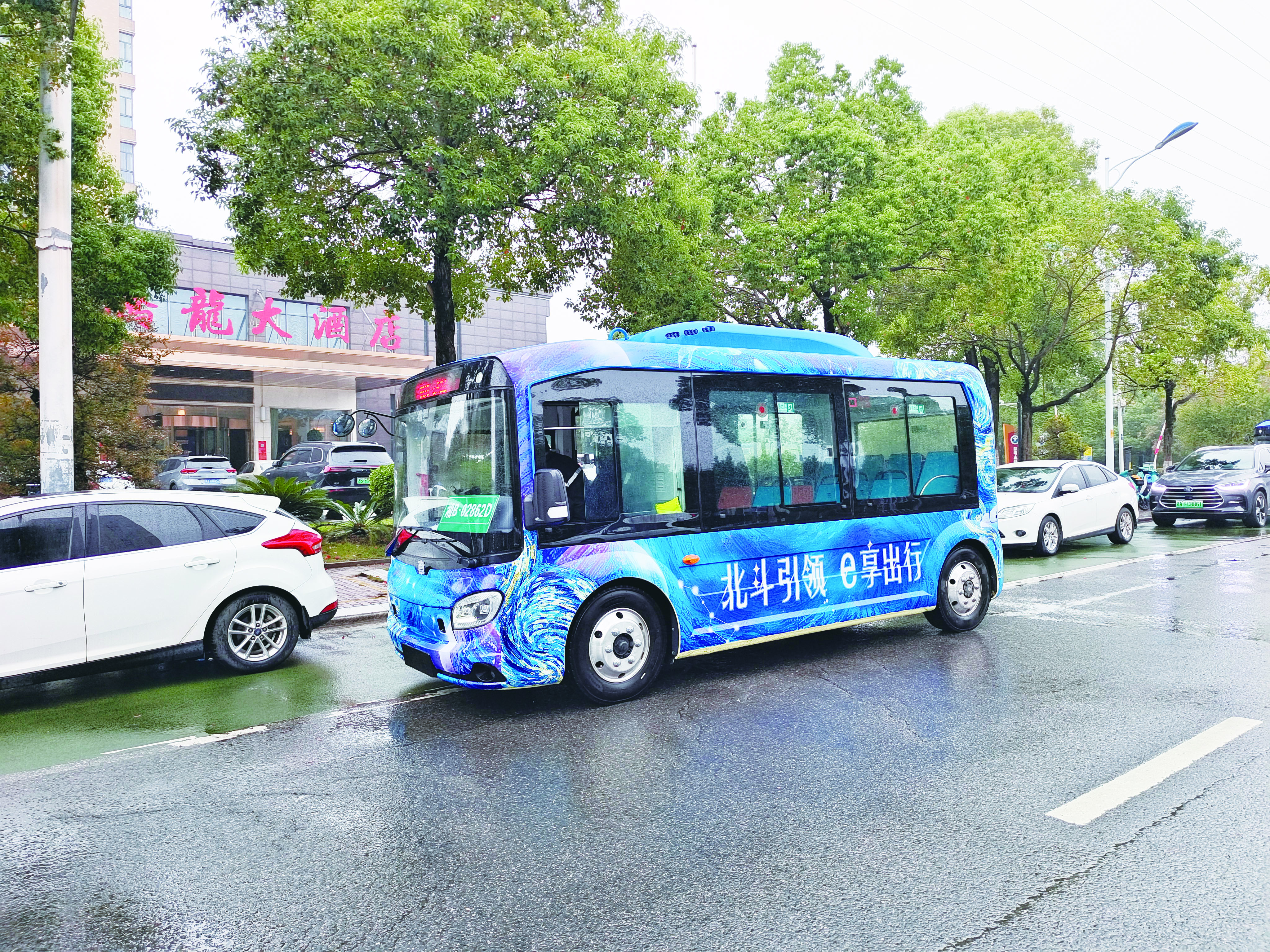 穿梭在职教城的北斗云尚公交。 记者/廖明 摄