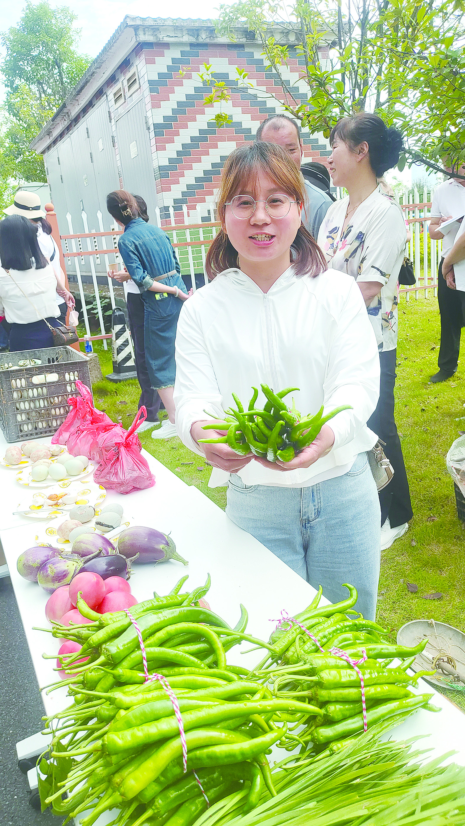 村民将自家种植的辣椒在乡村振兴签约仪式上贩卖。 记者/徐滔 摄