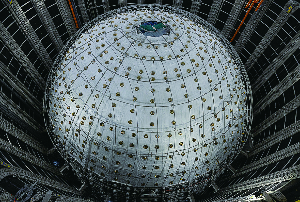 据中国科学院高能物理所消息,江门中微子实验建设目前已经进入收官阶段,最内层的有机玻璃球已合拢,外层的不锈钢网架和光电倍增管也在有序合拢中,预计11月底将完成全部安装任务。江门中微子实验以测量中微子质量顺序为首要科学目标,并进行其他多项重大前沿研究,建成后将成为国际中微子研究中心之一。