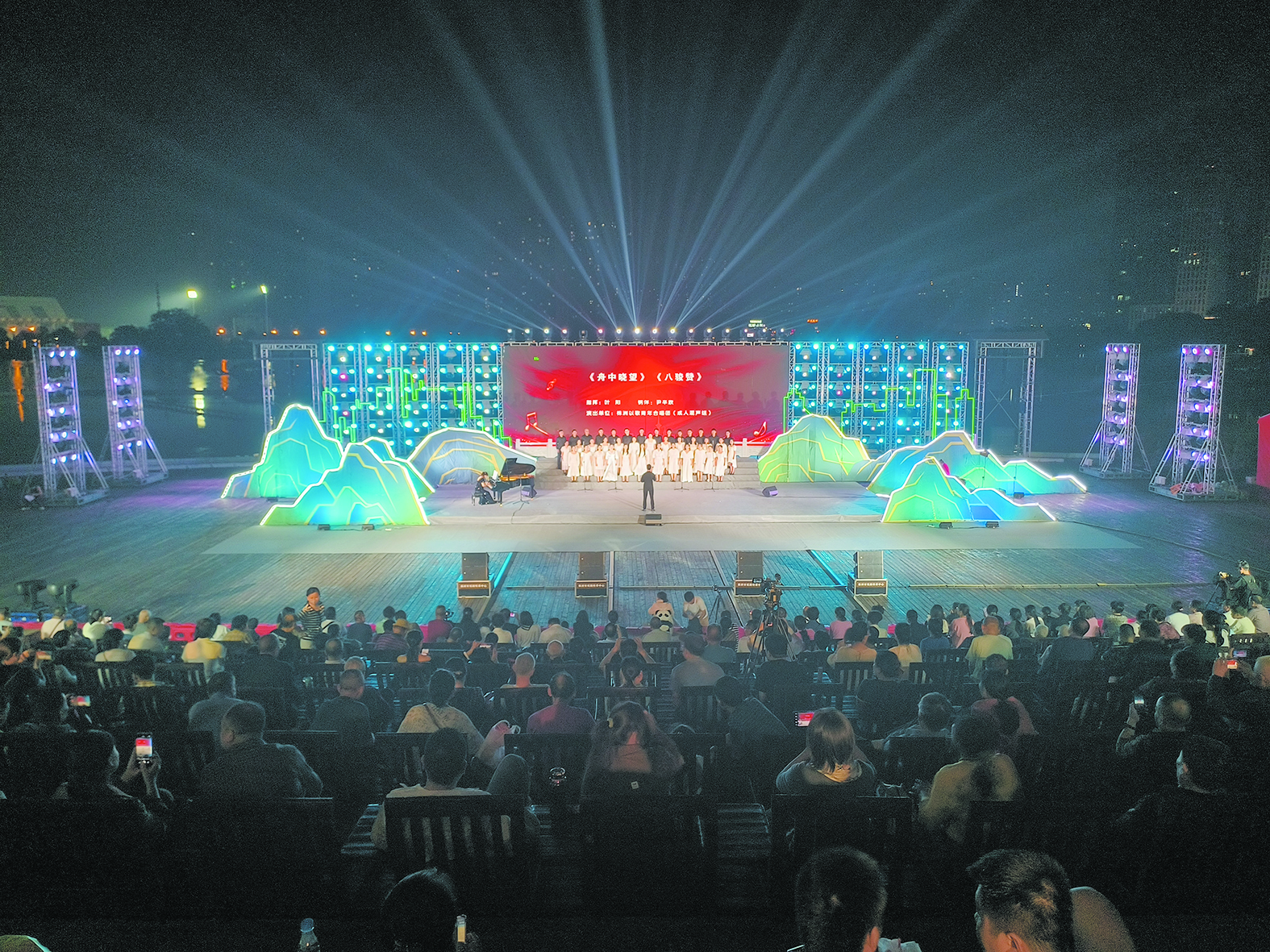 10月12日晚,“幸福株洲·一起来”合唱惠民展演在神农城水秀广场进行。中国退役军人合唱团、昆山丁善德合唱团、广州市花都区邝中合唱团等多个知名合唱团队齐聚株洲,用高昂嘹亮、悠然婉转的歌声、乐声,与株洲乐迷们共度一个美好的音乐之夜。