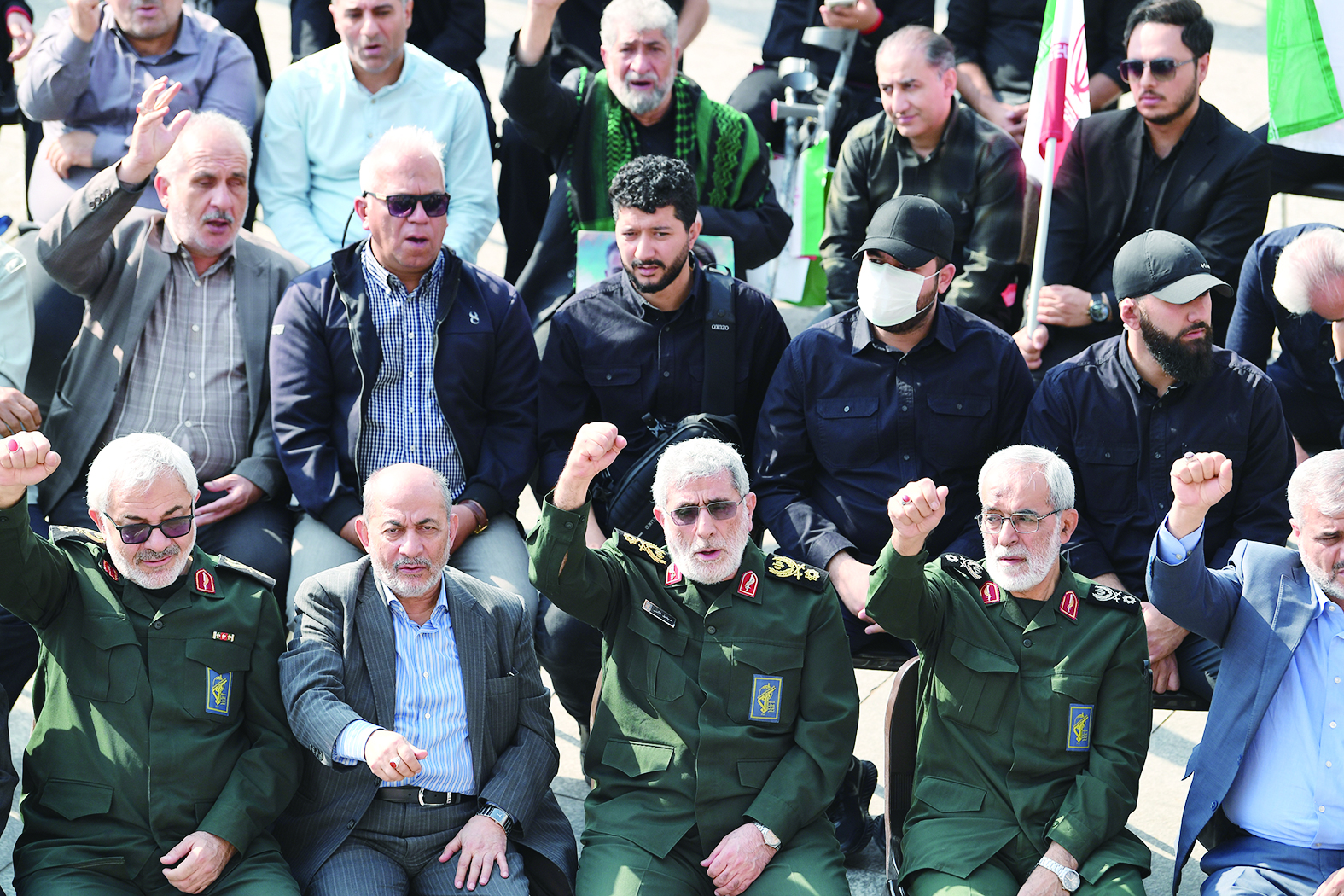 10月15日,卡尼(前中)在伊朗德黑兰参加尼尔福鲁尚的葬礼。 新华社记者 沙达提 摄