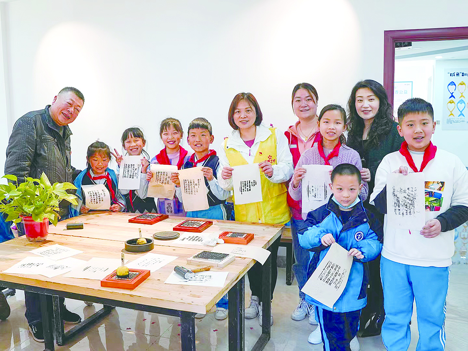 锦绣江山小区党支部组织学生参与非遗文化活动。 通讯员供图