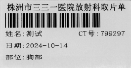 1.受检者在DR、CT、MRI登记检查后,登记处将给受检者打印一张带有条码的纸条。
